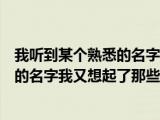 大家好,小东方来为大家解答以上的问题。我听到某个熟悉的名字我又想起了那些事,我听见某个熟悉的名字我又想起了那些事这个很多人还不知道, 浏览全文>>