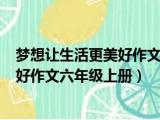 大家好,小东方来为大家解答以上的问题。梦想让生活更美好作文六年级上册700字,梦想让生活更美好作文六年级上册这个很多人还不知道,现在让 浏览全文>>