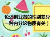 大家好,小东方来为大家解答以上的问题。论述创业者的性别差异论述,情绪管理在性别上的差异跟哪一种内分泌物质有关这个很多人还不知道,现在 浏览全文>>