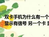 大家好,小东方来为大家解答以上的问题。双卡手机为什么有一个卡没有信号,为什么双卡手机一个卡显示有信号 另一个卡 显示无服务这个很多 浏览全文>>
