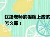 大家好,小东方来为大家解答以上的问题。送给老师的锦旗上应该写什么内容,送给老师的锦旗上应该怎么写这个很多人还不知道,现在让我们一起来 浏览全文>>