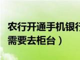大家好,小东方来为大家解答以上的问题。农行开通手机银行需要去柜台,开通手机银行需要去柜台这个很多人还不知道,现在让我们一起来看看吧! 浏览全文>>