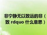 大家好,小东方来为大家解答以上的问题。非宁静无以致远的非,诫子书中的非宁静无以致远的 ldquo 致 rdquo 什么意思这个很多人还不知道, 浏览全文>>