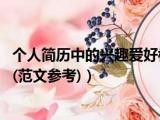 大家好,小东方来为大家解答以上的问题。个人简历中的兴趣爱好模板,个人简历中的兴趣爱好怎么写 (范文参考)这个很多人还不知道,现在让我们 浏览全文>>