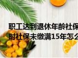 大家好,小东方来为大家解答以上的问题。职工达到退休年龄社保没交够15年,2017年达到退休年龄时社保未缴满15年怎么办这个很多人还不知道,现 浏览全文>>