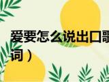 大家好,小东方来为大家解答以上的问题。爱要怎么说出口歌词表达,爱要怎么说出口歌词这个很多人还不知道,现在让我们一起来看看吧!1、表示 浏览全文>>