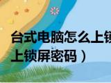 大家好,小东方来为大家解答以上的问题。台式电脑怎么上锁屏密码怎么设置,电脑怎么上锁屏密码这个很多人还不知道,现在让我们一起来看看吧! 浏览全文>>