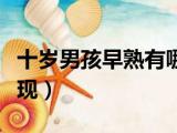 大家好,小东方来为大家解答以上的问题。十岁男孩早熟有哪些表现,男孩早熟有哪些表现这个很多人还不知道,现在让我们一起来看看吧!1、男孩 浏览全文>>