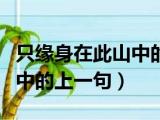 大家好,小东方来为大家解答以上的问题。只缘身在此山中的上一句诗是,只缘身在此山中的上一句这个很多人还不知道,现在让我们一起来看看吧! 浏览全文>>