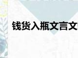 大家好,小东方来为大家解答以上的问题。钱货入瓶文言文翻译及注释,钱货入瓶这个很多人还不知道,现在让我们一起来看看吧!1、原文:唐扬州 浏览全文>>