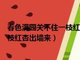 大家好,小东方来为大家解答以上的问题。春色满园关不住一枝红杏出墙来的意思,春色满园关不住一枝红杏出墙来这个很多人还不知道,现在让我们 浏览全文>>