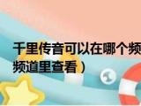 大家好,小东方来为大家解答以上的问题。千里传音可以在哪个频道里查看直播,千里传音可以在哪个频道里查看这个很多人还不知道,现在让我们一 浏览全文>>