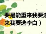 大家好,小东方来为大家解答以上的问题。要是能重来我要选李白是什么意思,要是能重来我要选李白这个很多人还不知道,现在让我们一起来看看吧 浏览全文>>