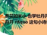 大家好,小东方来为大家解答以上的问题。苔花如米小 也学牡丹开的哲理,ldquo 苔花如米小 也学牡丹开 rdquo 这句小诗说明了什么人生哲 浏览全文>>