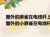 大家好,小东方来为大家解答以上的问题。窗外的麻雀在电线杆上多嘴你说这一句歌词,歌词 ldquo 窗外的小麻雀在电线杆上多嘴 rdquo 是什 浏览全文>>