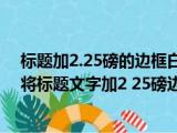 大家好,小东方来为大家解答以上的问题。标题加2 25磅的边框白色背景一深色2 5%底纹视频,如何将标题文字加2 25磅边框线这个很多人还不知道 浏览全文>>