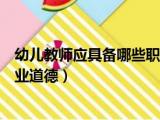 大家好,小东方来为大家解答以上的问题。幼儿教师应具备哪些职业道德素质,幼儿教师应具备哪些职业道德这个很多人还不知道,现在让我们一起来 浏览全文>>