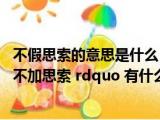大家好,小东方来为大家解答以上的问题。不假思索的意思是什么,ldquo 不假思索 rdquo 和 ldquo 不加思索 rdquo 有什么区别这个很多 浏览全文>>