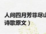 大家好,小东方来为大家解答以上的问题。人间四月芳菲尽山寺桃花始盛开,人间四月天诗歌原文这个很多人还不知道,现在让我们一起来看看吧!1 浏览全文>>