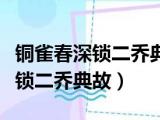大家好,小东方来为大家解答以上的问题。铜雀春深锁二乔典故的意思是什么,铜雀春深锁二乔典故这个很多人还不知道,现在让我们一起来看看吧! 浏览全文>>