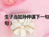 大家好,小东方来为大家解答以上的问题。生子当如孙仲谋下一句是什么意思,生子当如孙仲谋的下一句这个很多人还不知道,现在让我们一起来看看 浏览全文>>
