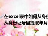 大家好,小东方来为大家解答以上的问题。在excel表中如何从身份证号中提取出生年月,Excel中怎么从身份证号里提取年月日这个很多人还不知道, 浏览全文>>