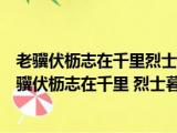 大家好,小东方来为大家解答以上的问题。老骥伏枥志在千里烈士暮年壮心不已所蕴含的中华美德,老骥伏枥志在千里 烈士暮年壮心不已这个很多 浏览全文>>
