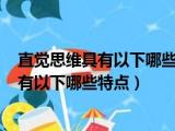 大家好,小东方来为大家解答以上的问题。直觉思维具有以下哪些特点A无整体推论过程,直觉思维具有以下哪些特点这个很多人还不知道,现在让我 浏览全文>>