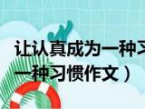 大家好,小东方来为大家解答以上的问题。让认真成为一种习惯作文议论文,让认真成为一种习惯作文这个很多人还不知道,现在让我们一起来看看吧 浏览全文>>