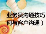 大家好,小东方来为大家解答以上的问题。业务员沟通技巧 与客户沟通技巧,业务员如何与客户沟通这个很多人还不知道,现在让我们一起来看看吧 浏览全文>>
