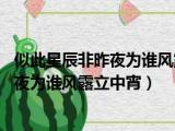 大家好,小东方来为大家解答以上的问题。似此星辰非昨夜为谁风露立中宵 代表什么肖,似此星辰非昨夜为谁风露立中宵这个很多人还不知道,现在 浏览全文>>