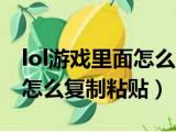 大家好,小东方来为大家解答以上的问题。lol游戏里面怎么复制粘贴名字,lol游戏里面怎么复制粘贴这个很多人还不知道,现在让我们一起来看看吧 浏览全文>>
