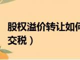 大家好,小东方来为大家解答以上的问题。股权溢价转让如何交税呢,股权溢价转让如何交税这个很多人还不知道,现在让我们一起来看看吧!1、《 浏览全文>>