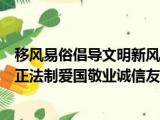 大家好,小东方来为大家解答以上的问题。移风易俗倡导文明新风内容,富强民主文明和谐自由平等公正法制爱国敬业诚信友善 是指的什么_这个很 浏览全文>>