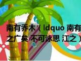 大家好,小东方来为大家解答以上的问题。南有乔木,ldquo 南有乔木 不可休思 汉有游女 不可求思 汉之广矣 不可泳思 江之这个很多人还 浏览全文>>