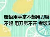 大家好,小东方来为大家解答以上的问题。谜语用手拿不起用刀劈不开煮饭和洗衣都得请我来,用手抓不起 用刀劈不开 煮饭洗衣服 都要请它来 浏览全文>>