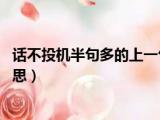 大家好,小东方来为大家解答以上的问题。话不投机半句多的上一句是什么,话不投机半句多 是什么意思这个很多人还不知道,现在让我们一起来看 浏览全文>>