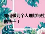 大家好,小东方来为大家解答以上的问题。如何做到个人理想与社会理想的统一,个人理想与社会理想的统一这个很多人还不知道,现在让我们一起来 浏览全文>>