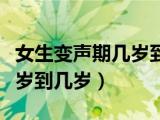 大家好,小东方来为大家解答以上的问题。女生变声期几岁到几岁结束,女生变声期从几岁到几岁这个很多人还不知道,现在让我们一起来看看吧!1 浏览全文>>