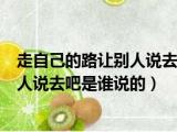大家好,小东方来为大家解答以上的问题。走自己的路让别人说去吧是谁说的这句话,走自己的路让别人说去吧是谁说的这个很多人还不知道,现在让 浏览全文>>