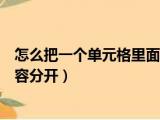 大家好,小东方来为大家解答以上的问题。怎么把一个单元格里面的内容分开,怎样把一个单元格的内容分开这个很多人还不知道,现在让我们一起来 浏览全文>>