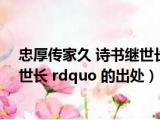 大家好,小东方来为大家解答以上的问题。忠厚传家久 诗书继世长的意思,ldquo 忠厚传家久诗书继世长 rdquo 的出处这个很多人还不知道,现 浏览全文>>