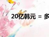 大家好,小东方来为大家解答以上的问题。20亿韩元 = 多少人民币,20亿韩元这个很多人还不知道,现在让我们一起来看看吧!1、根据2020年1月2 浏览全文>>