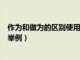 大家好,小东方来为大家解答以上的问题。作为和做为的区别使用举例子说明,作为和做为的区别使用举例这个很多人还不知道,现在让我们一起来看 浏览全文>>