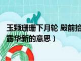 大家好,小东方来为大家解答以上的问题。玉颗珊珊下月轮 殿前拾得露华新,玉颗珊珊下月轮殿前拾得露华新的意思这个很多人还不知道,现在让我 浏览全文>>