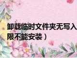 大家好,小东方来为大家解答以上的问题。卸载临时文件夹无写入权限不能安装,临时文件夹无写入权限不能安装这个很多人还不知道,现在让我们一 浏览全文>>