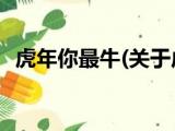大家好,今天小方来说说一篇关于虎年你最牛,关于虎年你最牛部分内容简述的文章,那么现在就为大家来简单介绍下,希望对各位小伙伴们有所帮 浏览全文>>
