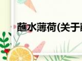 大家好,今天小方来说说一篇关于蘸水薄荷,关于蘸水薄荷部分内容简述的文章,那么现在就为大家来简单介绍下,希望对各位小伙伴们有所帮助。 浏览全文>>