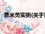 大家好,今天小方来说说一篇关于薏米莲子粥,关于薏米莲子粥部分内容简述的文章,那么现在就为大家来简单介绍下,希望对各位小伙伴们有所帮 浏览全文>>