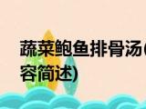 大家好,今天小方来说说一篇关于蔬菜鲍鱼排骨汤,关于蔬菜鲍鱼排骨汤部分内容简述的文章,那么现在就为大家来简单介绍下,希望对各位小伙伴 浏览全文>>